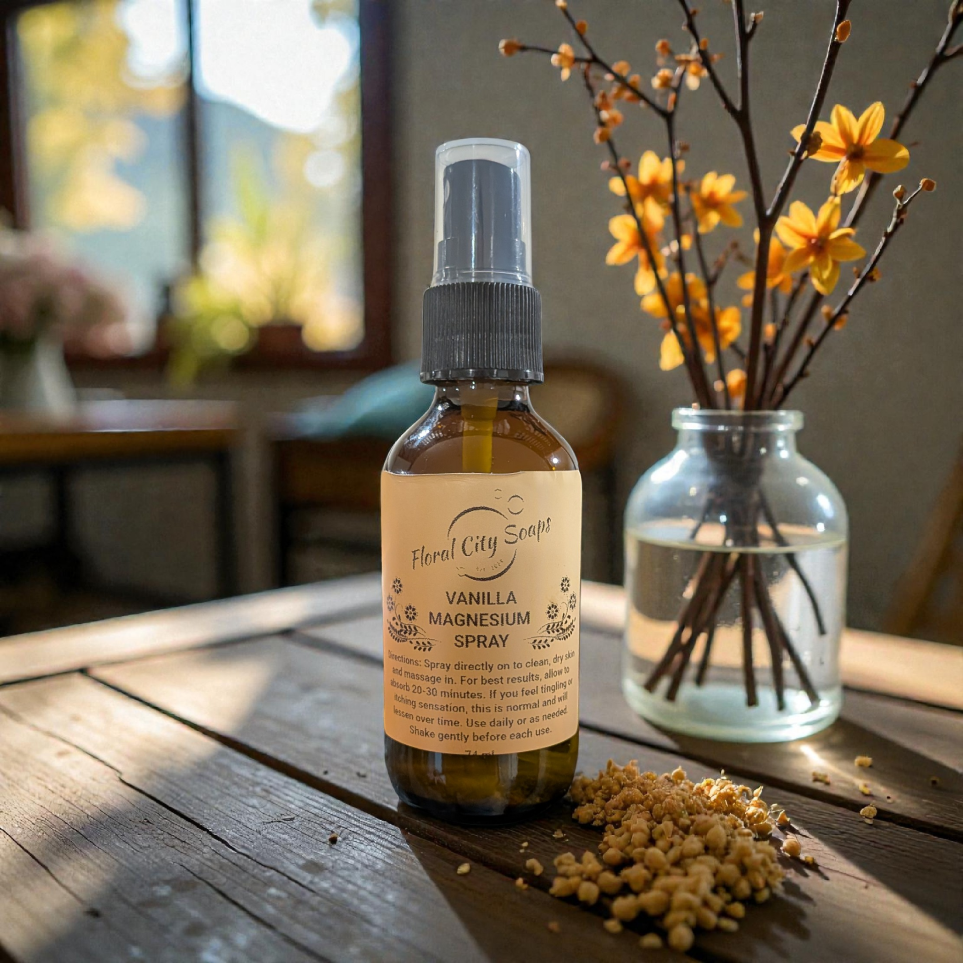 Ingredients: Magnesium Flakes, Distilled Water, Vanilla Essential Oil, Germall Plus